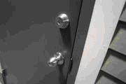 Door with two locks, one in the doorknob and a separate deadbolt.